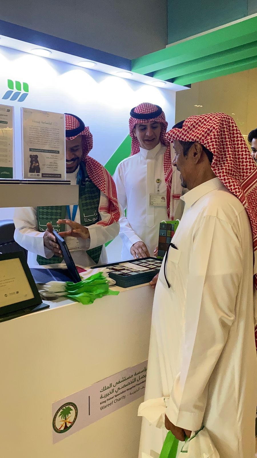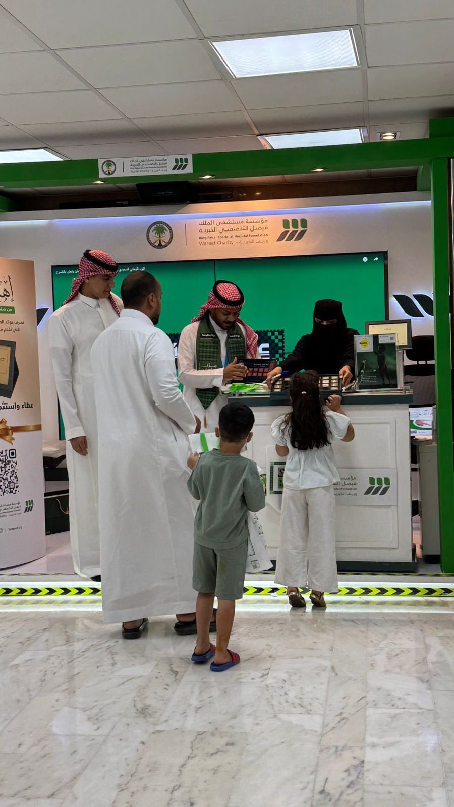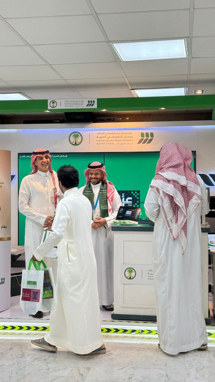 جانب من مشاركة مؤسسة وريف الخيرية في أركانها التعريفية بـ مستشفى الملك فيصل التخصصي ومركز الأبحاث بمدينة الرياض، بمناسبة اليوم الوطني السعودي، ضمن جهودها في التعريف برسالتها وتعزيز حضورها المجتمعي.